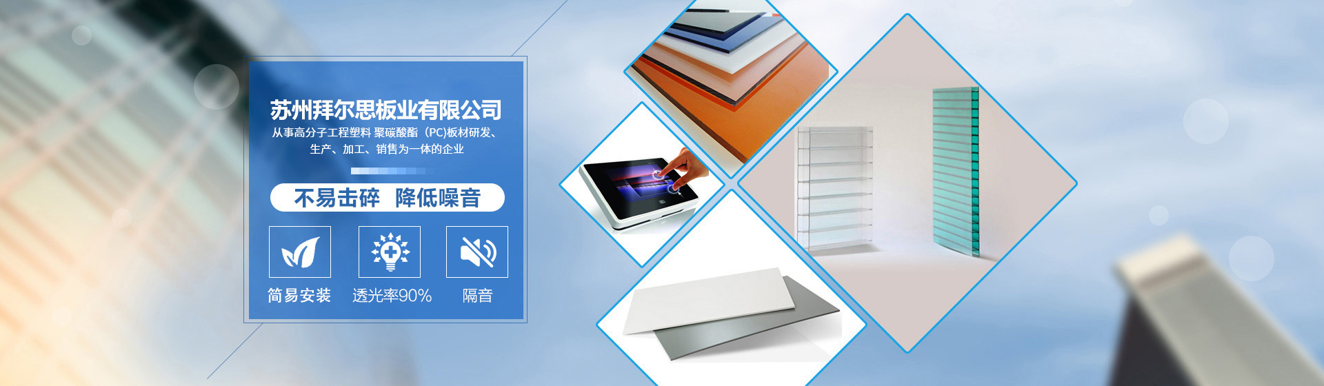 蘇州拜爾思板業有限公司是從事高分子工程塑料 聚碳酸酯(PC)板材研發(fā)、生產、加工、銷售為一體的企業。生產廠址:蘇州市相城區黃埭鎮東橋警民路8號;江蘇省大豐市大橋工業園。公司產品體系豐富,主營產品有PC耐力板、PC工業用板、PC燈箱廣告板、PC浪瓦、PC車雨棚專用板、PC陽光板等,同時近期通過公司技術人員的不懈努力再次推出PC耐酸堿板、PC隔熱板、PC防靜電板、PC硬化板、V0級阻燃板等聚碳酸酯PC系列新型產品。
